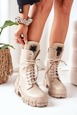 Zamszowe Ocieplane Workery Z Kamieniami Beżowe Hadley