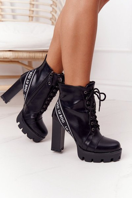 Sznurowane Botki Na Słupku Lu Boo Czarne
