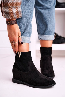 Damskie Botki Na Koturnie Zamszowe Czarne Vanya