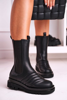 Damskie Ocieplane Workery Trapery Czarne Timber