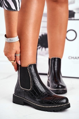 Botki Damskie Z Wycięciami Croco Czarne Aria