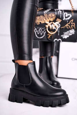 Botki Damskie Workery Ciepłe Czarne Bipper