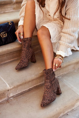 +1Damskie Botki Na Słupku Cętki Camel Panther