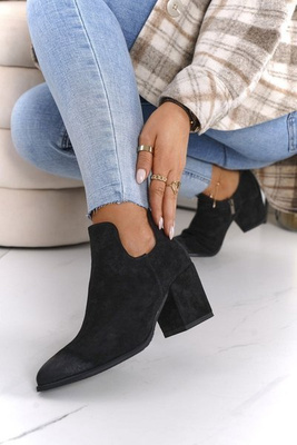 +3Damskie Botki Z Wycięciem Na Słupku Zamszowe Czarne Lawrence