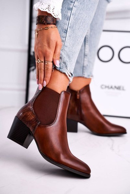 Botki Damskie Na Obcasie Sergio Leone Brązowe BT613