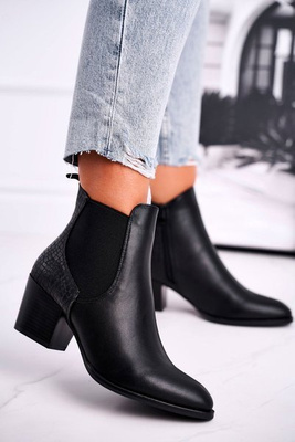 Botki Damskie Na Słupku Ciepłe Kowbojki Czarne Athens