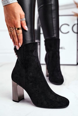 Botki Damskie Na Słupku Eko-Zamsz Czarne Juliet