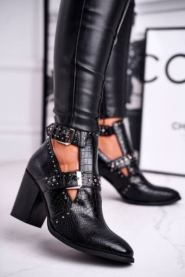 Botki Damskie Z Wycięciami Croco Czarne Aria