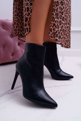 Botki Damskie Na Słupku W Szpic Czarne Macada