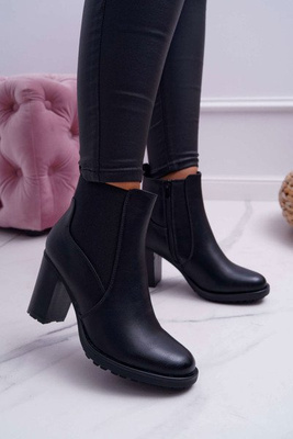 Botki Damskie Na Słupku z Zamkiem Czarne Beloved