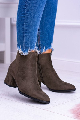 +1Damskie Botki Na Słupku Zamsz Khaki Ferimate