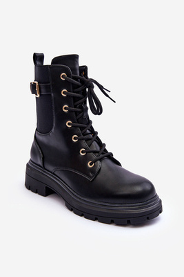 Damskie Ocieplane Botki Trapery Sznurowane Czarne Halfway