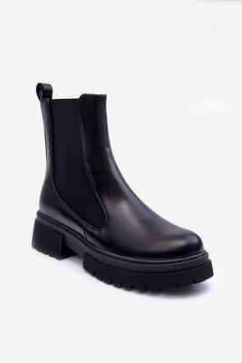 Skórzane Botki Damskie Workery Czarne Tedrick