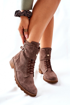 Damskie Skórzane Welurowe Botki Nicole 2682 Brązowe