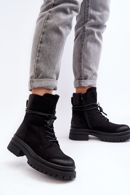 Zamszowe Trapery Botki Damskie Na Grubej Podeszwie Z Suwakiem Czarne Edivame