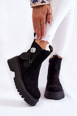 +2Zamszowe Damskie Botki Na Platformie Czarne Lemar Hilde