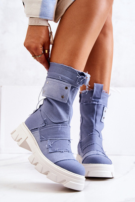 Wysokie Botki Workery Na Suwak Niebieskie Nerisa