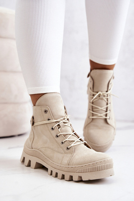 +3Wysokie Botki Workery Na Suwak Beżowe Nerisa