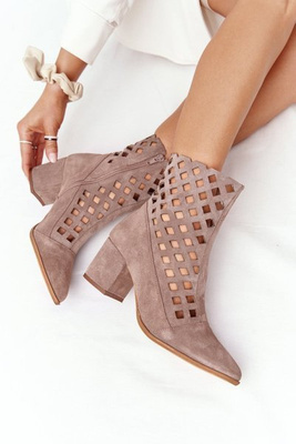 Zamszowe Ażurowe Botki Na Obcasie Nicole 2638 Cappuccino