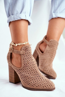Botki Damskie Na Słupku Zamszowe Ażurowe Beżowe Morrena