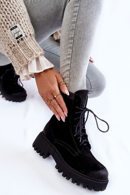Zamszowe Damskie Botki Na Platformie Czarne Lemar Hilde