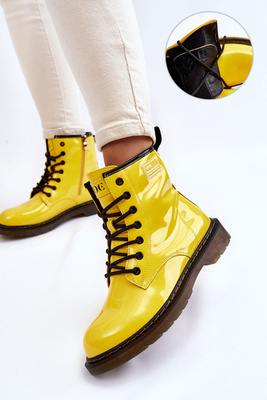+3Damskie Lakierowane Botki Ocieplane GOE II2N4054 Żółte