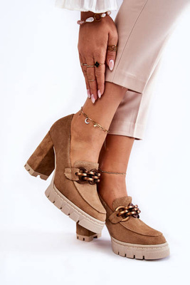 Zamszowe Czółenka Z Ozdobnym Łańcuchem Laura Messi 2444 Jasnobrązowe