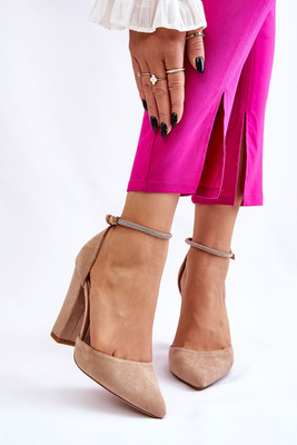 Czółenka Damskie Na Słupku Sergio Leone Jasnobeżowe Perła Campbell