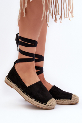 Wiązane Zamszowe Espadryle Czarne Ismanne