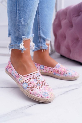 Materiałowe Różowe Damskie Espadryle Slip On Kwiaty Wild