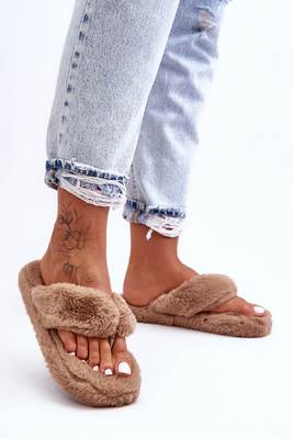 Zamszowe Damskie Papcie Z Futerkiem Camel Buffie