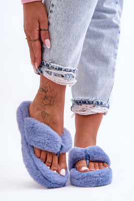 Damskie Futrzane Klapki Papcie Niebieskie Elma