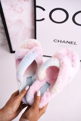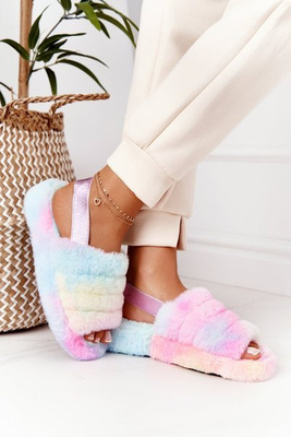 Futrzane Papcie Na Platformie Kolorowe Snowflake