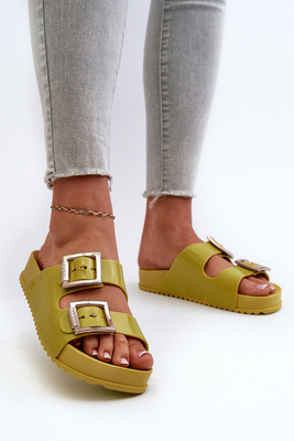 +8Damskie Klapki Na Grubej Podeszwie Zielone Oreithano