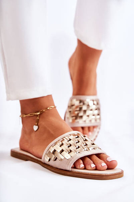 Skórzane Damskie Klapki Nicole 2735 Beżowe