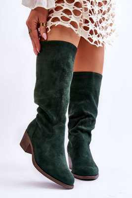 Damskie Zamszowe Kozaki Kowbojki Lewski 3094/F Ciemnobeżowe
