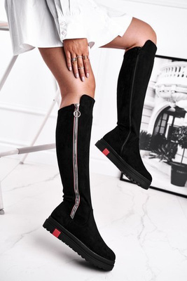 Damskie Kozaki Do Kolana Zamszowe Czarne Twins