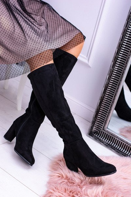 Czarne Zamszowe Kozaki Za Kolano Muszkieterki Ćwieki Almo