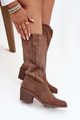 +1Pokaż filmKozaki Kowbojki Damskie Ze Zdobieniem Na Słupku Czekoladowe Jovina