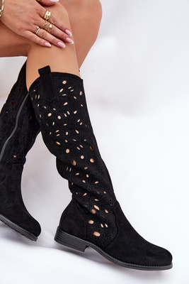 Ażurowe Kozaki Na Płaskim Obcasie HY51-176 Czarne