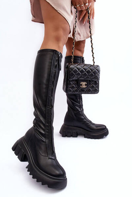 Damskie Kozaki Na Platformie Do Kolana Czarne Milania