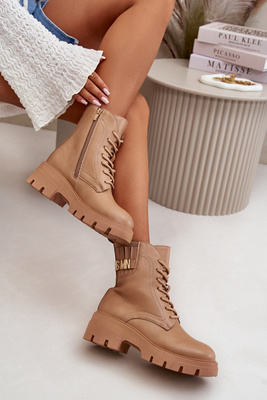 Sneakersy Skórzane Damskie Na Platformie Beżowe CheBello 4568