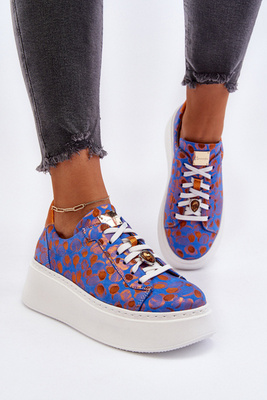 +8Skórzane Buty Sportowe Na Platformie Maciejka 06191-06 Niebieskie