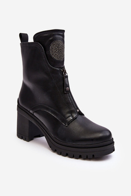 Skórzane Botki Workery Zdobione Dżetami GOE MM2N4041 Czarne