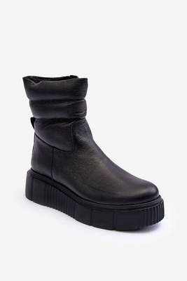 +1Skórzane Damskie Botki Na Platformie Czarne Lemar Suam
