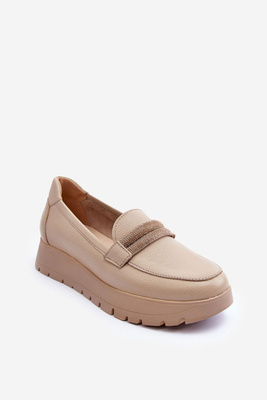+1Skórzane Damskie Botki Na Platformie Jasnobeżowe Lemar Suam
