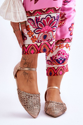 +2Damskie Płaskie Sandały Z Ozdobnym Paskiem Złote Berry
