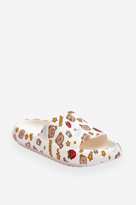 +1Damskie Piankowe Klapki W Misie I Napisy Beżowo-Pomarańczowe Zoey
