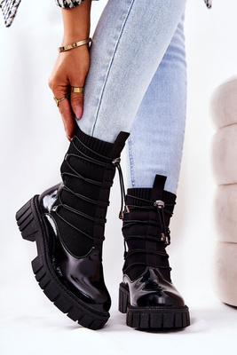 Lakierowane Botki Workery Ze Skarpetą Czarne Connor