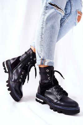 Skórzane Botki Workery Maciejka Czarne 05219-01